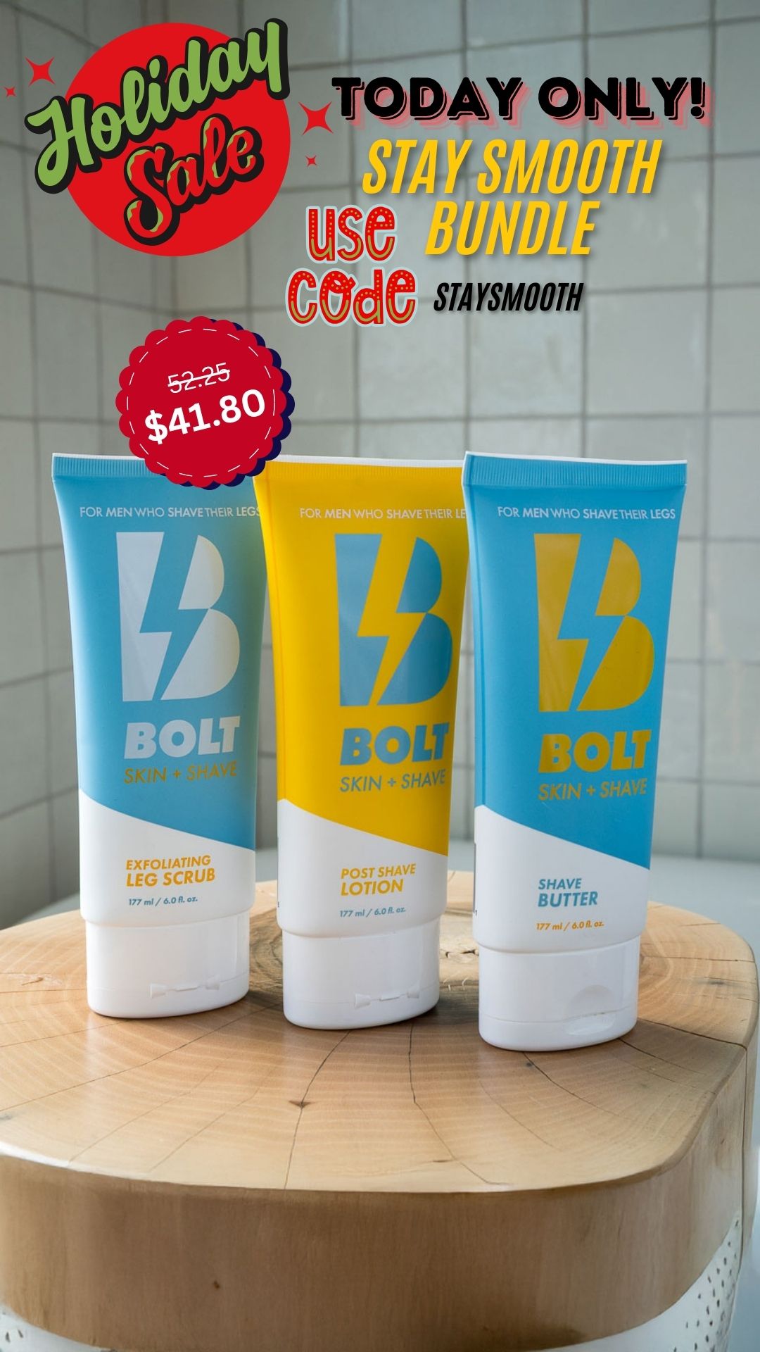BOLT Skin + Shave was created to answer the needs of a category that has thus far remained unacknowledged in the consumer world. Men who shave their legs have silently bided their time in a feminine market place for years.With the launch of BOLT, these men can finally welcome a brand that acknowledges their needs with a more masculine approach to leg shaving in aesthetic, function and fragrance.