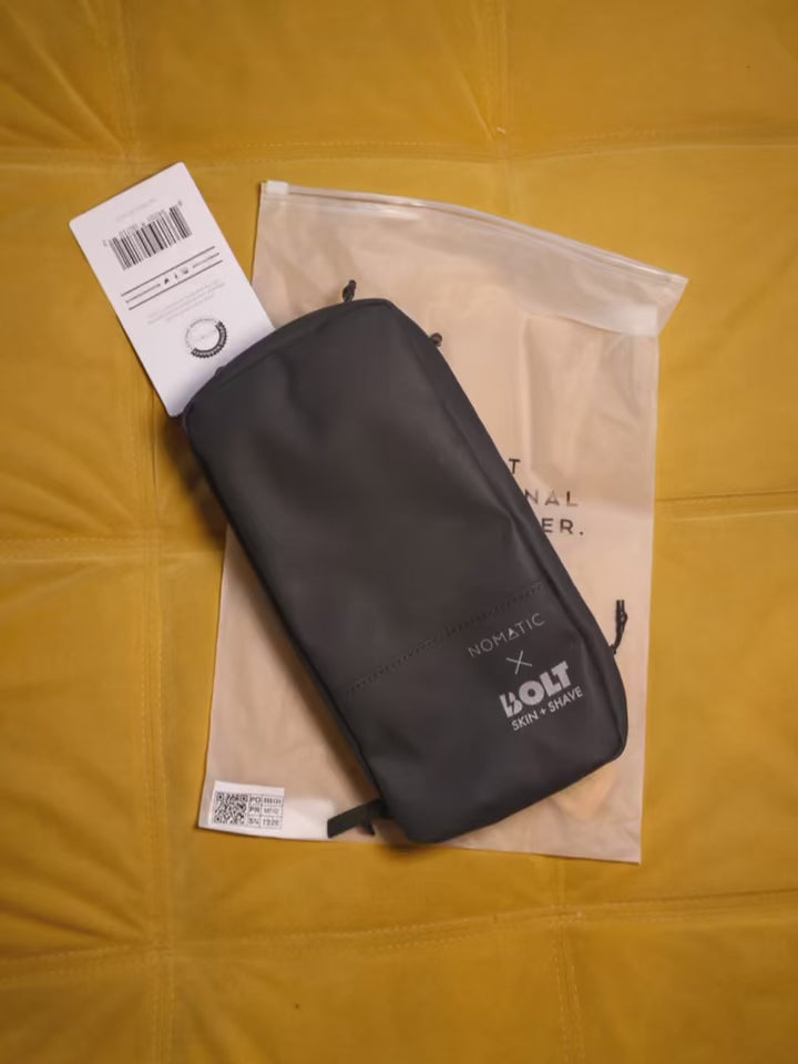 We partnered with Nomatic to bring you a toiletry bag that will accommodate ALL of your BOLT products (and then some) in an exceptionally clean, contemporary package. Made with durable, water-resistant materials and zippers to ensure there are no leaks and your toiletries stay protected. A hanging strap and dedicated razor pocket are a few of the many features that make these the most functional toiletry bags ever.